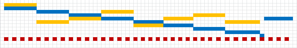 少しずつ定まった間隔でゆっくりと地平線へ沈んでいく様に確実に1音程ずつ音高が下がるベース